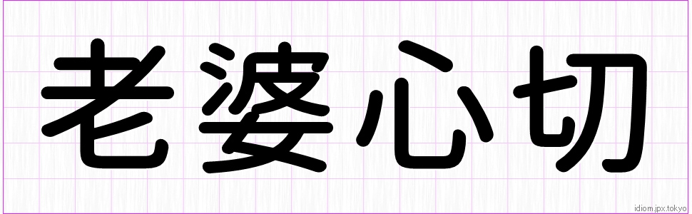 老 婆 心 切 (ろうばしんせつ)Kanji and example |