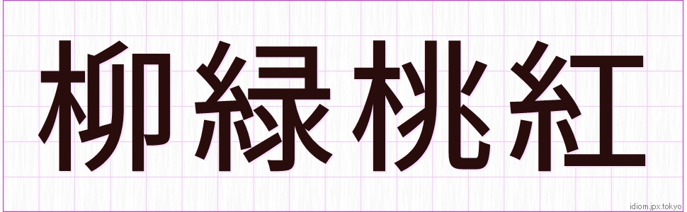 柳 緑 桃 紅 (りゅうりょくとうこう)Kanji and example |