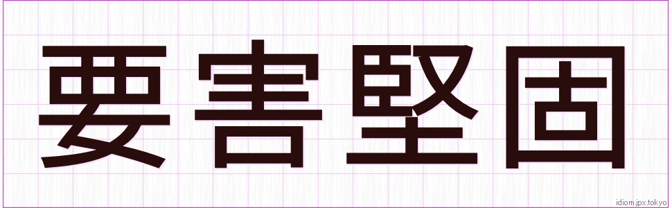 要 害 堅 固 (ようがいけんご)Kanji and example |