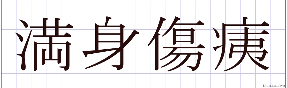 満 身 傷 痍 (まんしんしょうい)Kanji and example |
