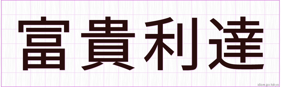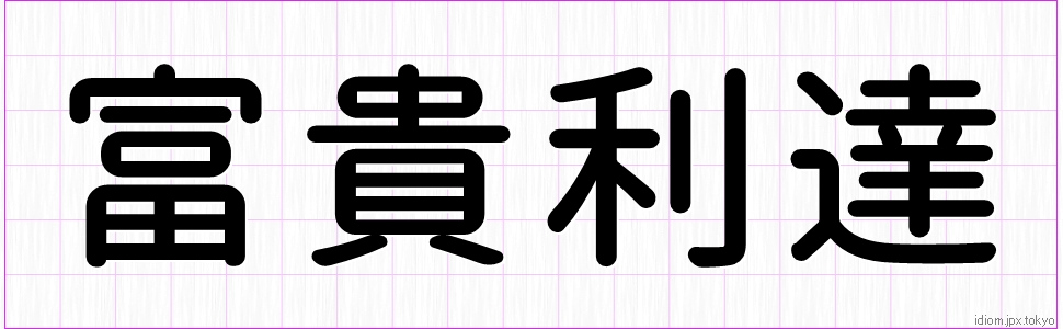 富貴利達 (ふうきりたつ)Kanji and example |