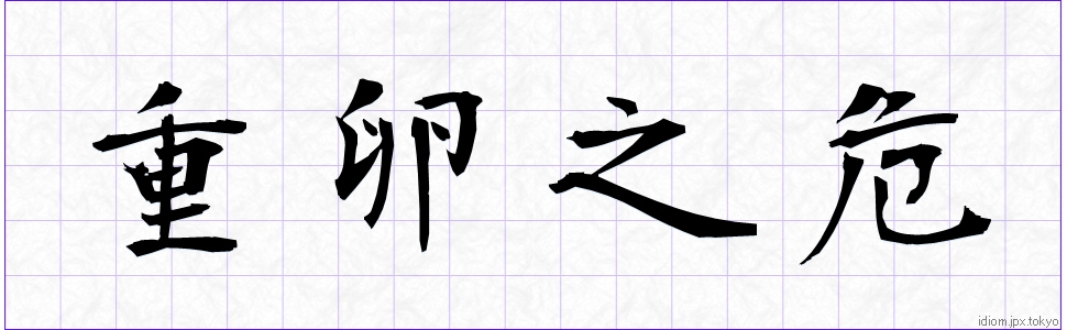 重卵之危 how to write. Japanese idioms and calligraphy