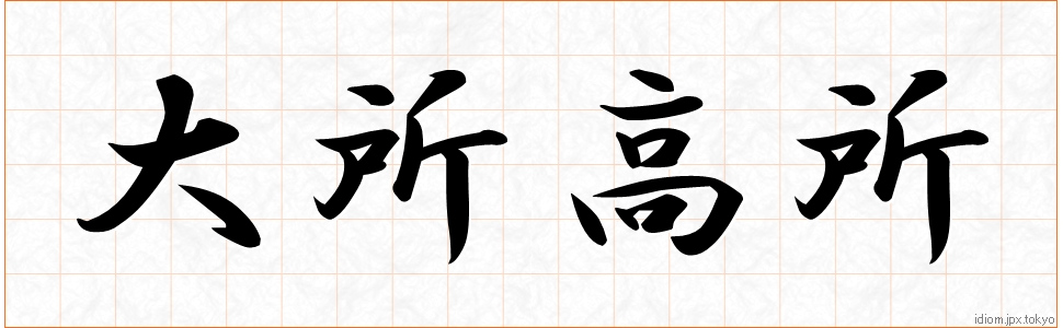 大所高所 how to write. Japanese idioms and calligraphy